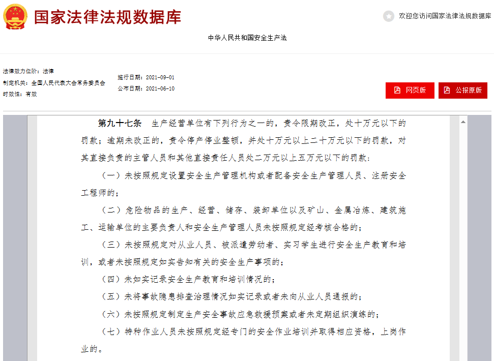 另外有想要詳細了解處罰信息的,可以參考《安全生產(chǎn)法》第九十七條。